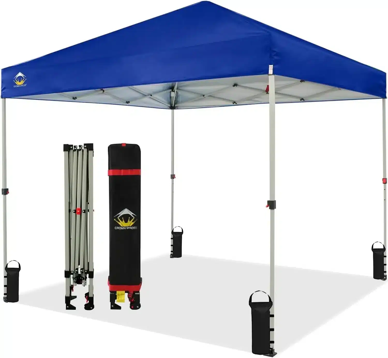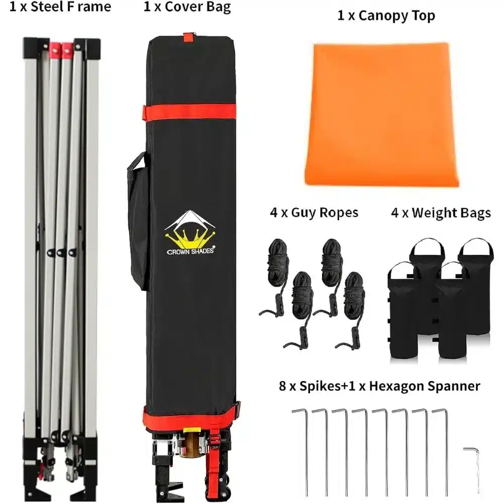 STO’ N GO SYSTEM – Our lift-free system makes collapsing, storing, and transporting the 10×10 tent a breeze. The 10×10 popup canopy can be stored with the fabric attached, with a specialized pocket for 4 sandbags, 8 stakes, and 4 guy ropes. Integrated wheels in the feet allow easy movement even when the instant shelter tent is set up, by simply lifting the side without wheels. This feature is especially useful for quick setup and takedown at locations like the patio or sports events
