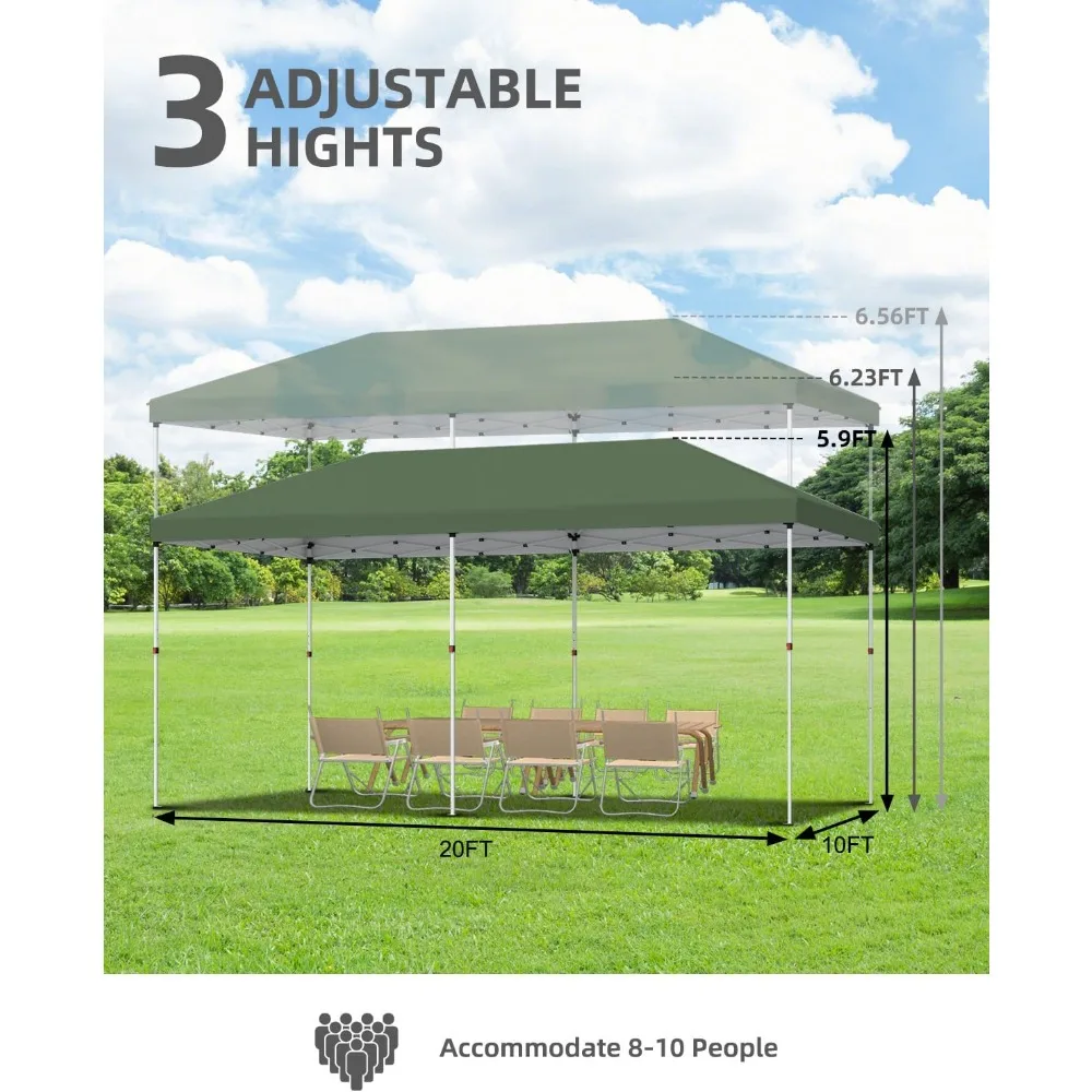 - Multifunctional Canopy: The number of side walls can be adjusted to fit various usage scenarios. This 10×20 pop-up canopy is versatile and suitable for a wide range of activities, including camping, trade shows, picnics, gatherings, barbecues, sports events, arts and crafts, and other outdoor events.