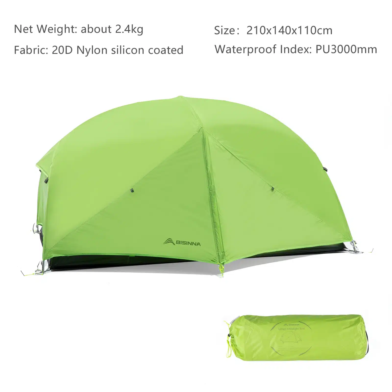 LARGE SIZE&LIGHTWEIGHT: Ultralight 2 person tent! Interior Size 210*140*110cm. Net Weight about 2.4kg. Packing Size: 45*15*15CM easy to put in one's backpack. Larger than most 2 person backpacking tents.