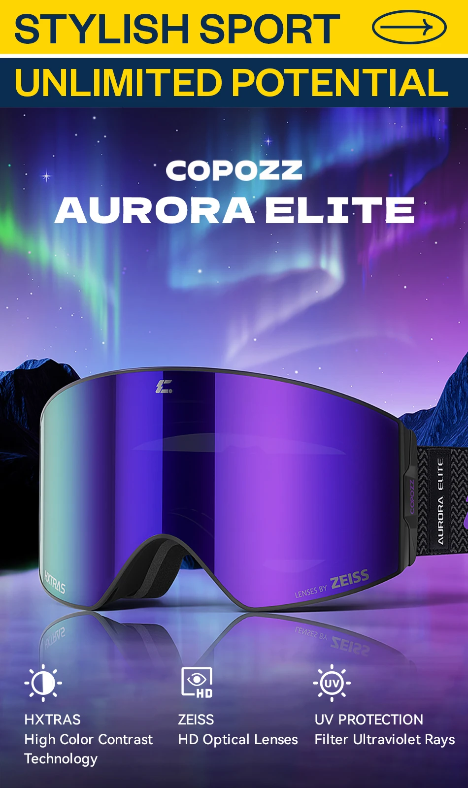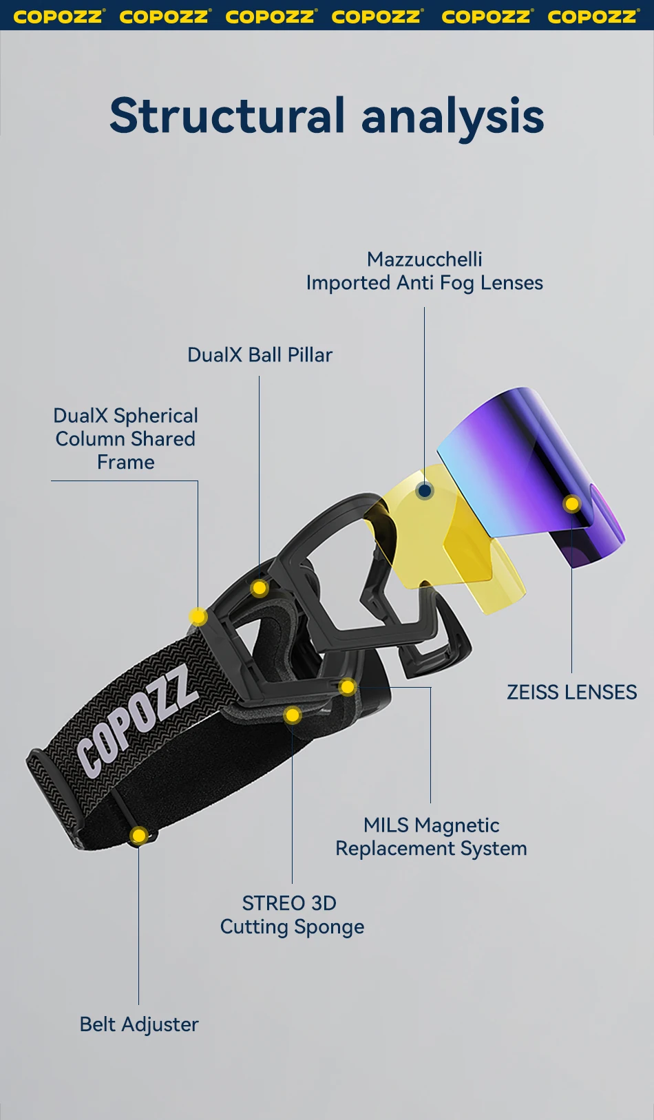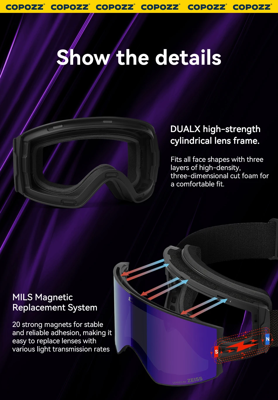 COPOZZ New Men Magnetic Ski Goggles Adult Anti-fog Ski Glasses UV400 Protection Snow Snowboard Goggle Eyewear with Zeiss lens