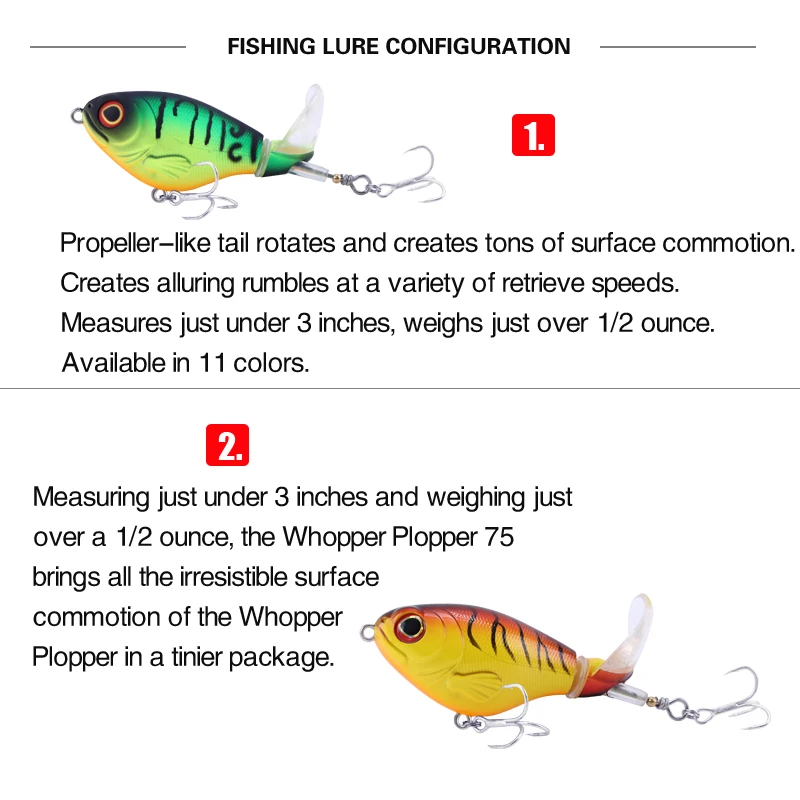 Product name: Fishing Wobblers with Rotating Tail Hard Baits 75mm 17g Whopper Plopper Topwater Pesca Prop Bass Lure Saltwater Crankbait