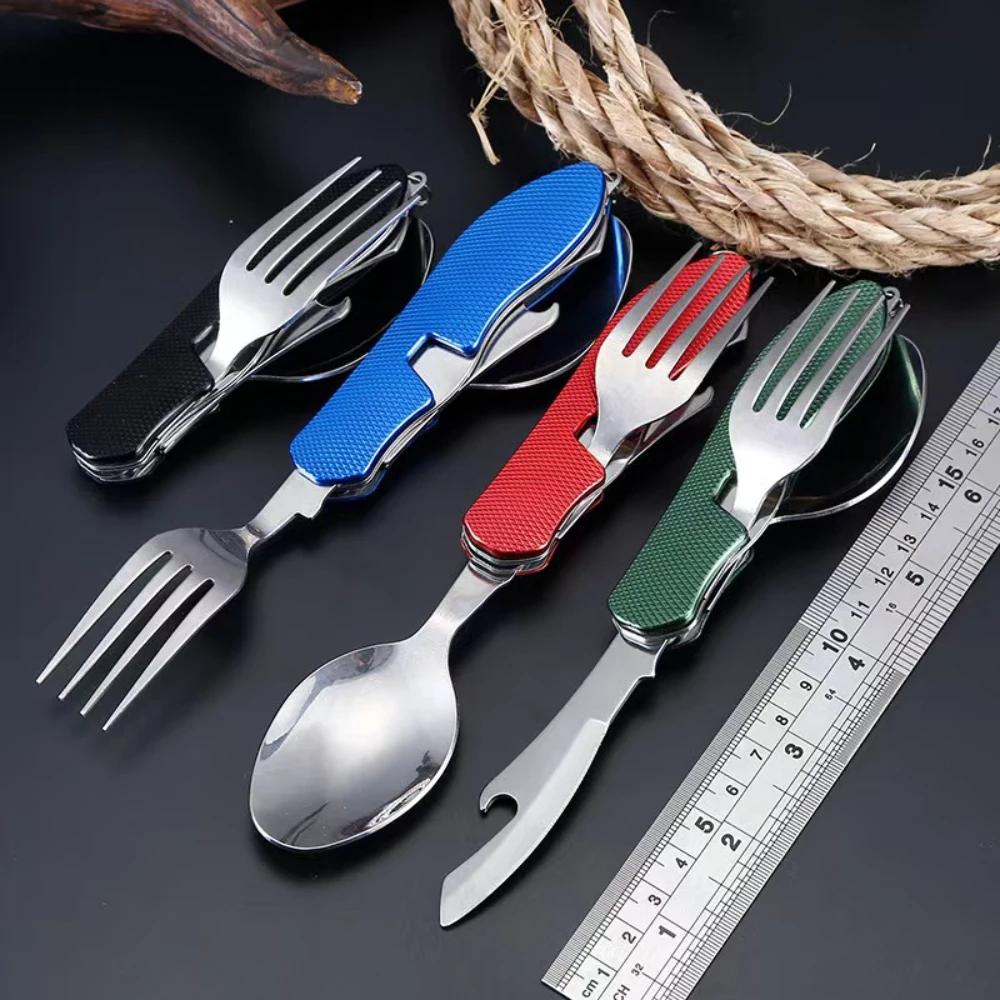 Foldable Camping Utensil Set Multifunctional Knife Fork Spoon Combo for Outdoor Activities Sports Camping Picnic Travel