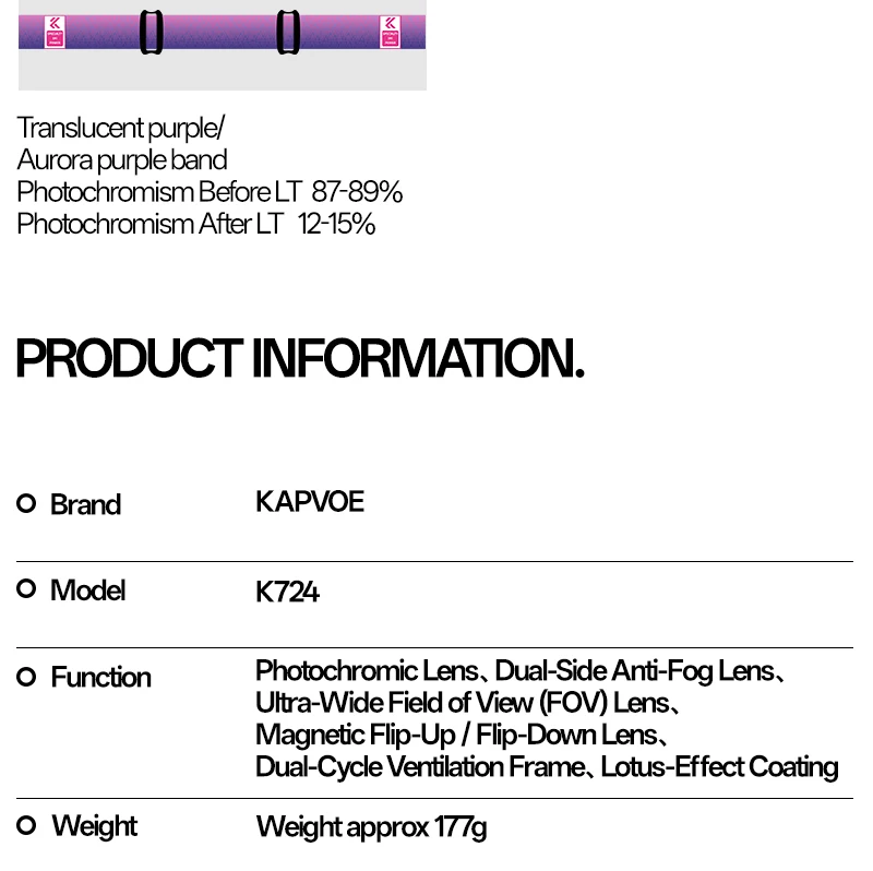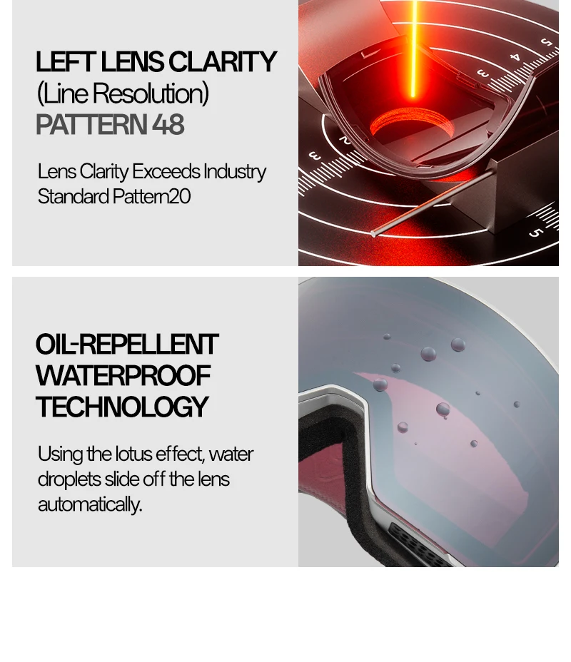⛷️Tecnology photochromy: The KAPVOE ski goggles use photochromic technology. The lenses change colour according to UV intensity, adapt to different weather conditions and can be used both during the day and at night, improving the snow viewing angle. In addition, the oleophobic layer on the surface can dissipate the melted snow water smoothly without leaving a trace.