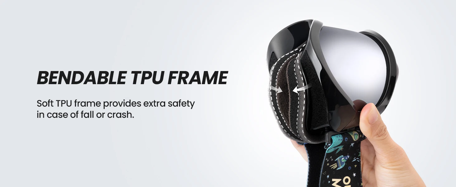 Soft TPU frame: Safety first. These goggles features a soft frame that provides extra safety in case of fall or crash, compared to a harder frame